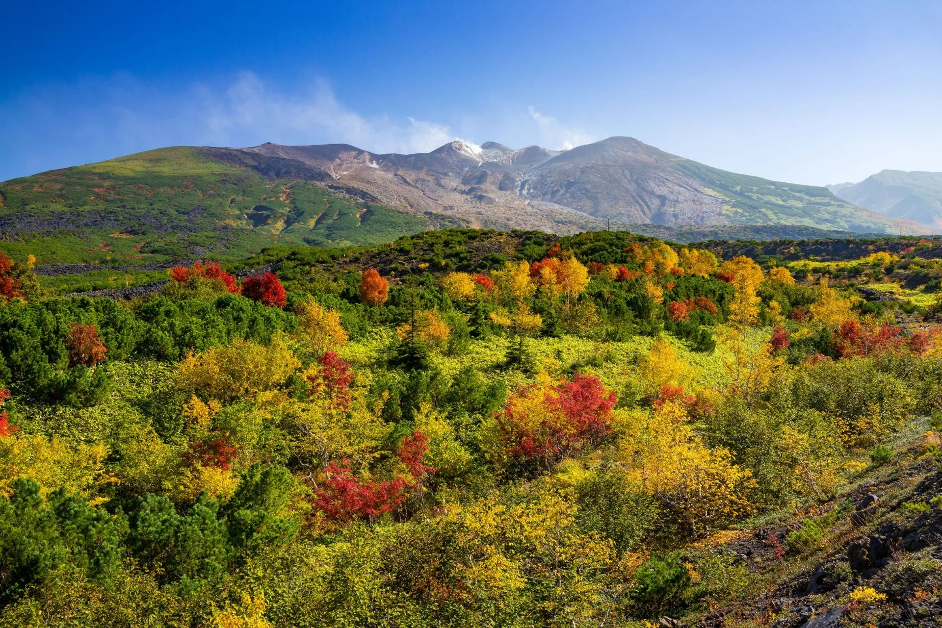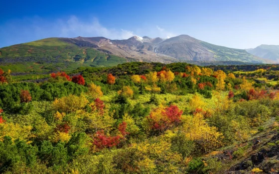The great nature of Mt. Daisetsu and the dynamic view of the active volcano Mt. Tokachi-dake are right before your eyes.