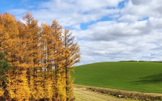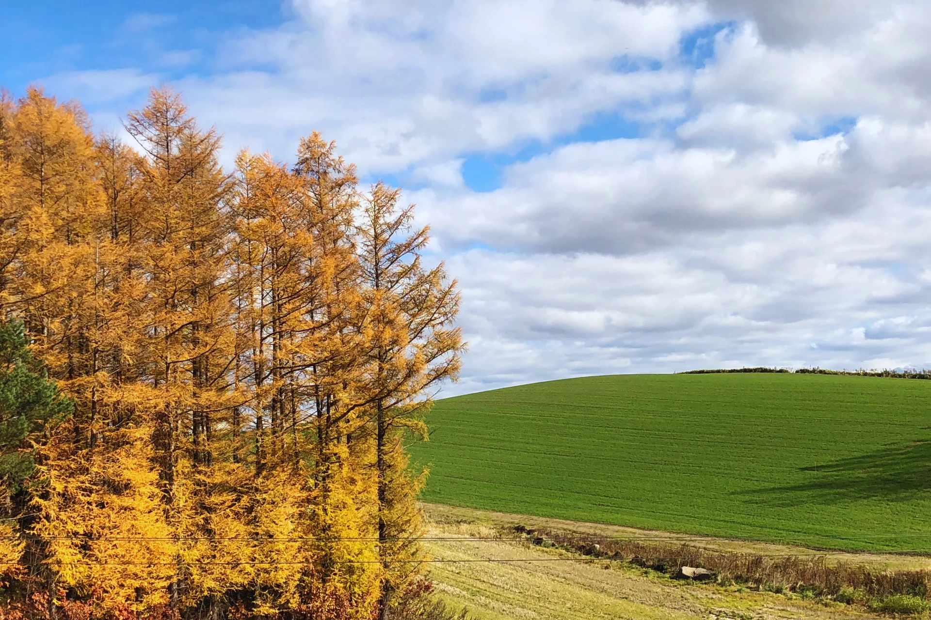 This approximately 5-kilometer straight road extends toward the Furano Basin, offering views of patchwork farmland and the grand Tokachi Mountain Range.